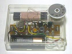 ケースは透明なプラスチックケースが良いのですが、イヤホー ンラジオなのでポケットに入る大きさで、なるべく大きい方が作 りやすいでしょう。右のケースは70mmx90mmx22mm でしたが、厚みに余裕がなくて部品の足を短く切ってラグ板に留 めなければなりませんでした。もう一回り大きいケースを勧めま す。また平ラグ板はビスで、電池ホルダーやバーアンテナは両面 テープで固定するとやりやすいです。