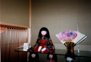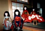 97.12.13-98.1.15湯布院の丘の上にギャラリー綾がありますギャラリーのオープン記念の展示に、お人形さんと一緒に扇絵たちもお披露目に一役