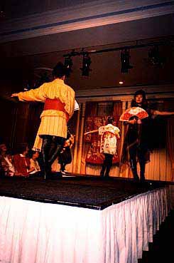 きもののファッションショーで扇面が使われました。