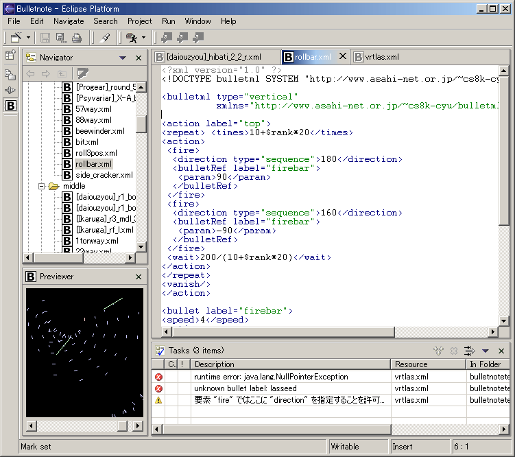 BulletML記述用のEclipseプラグイン、 試験公開。
