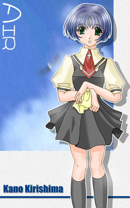 [霧島佳乃@Air] 「AIR」ヒロインの中で一番目立ってない(姉の方が目立ってる(爆))霧島佳乃です。 でもホンネを言えば、彼女がただ単にキャラとして見た場合、いちばん可愛いと思いますです。 それにしても、「AIR」はなんか「Moon.」に近いイメージがするんですけど 私だけでしょうか?(母子とか姉妹とか……) 相変わらす、私が描くと似ないねぇ。最近、なんだか開き直ってます(笑)