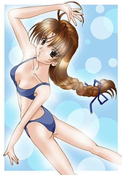 ワンピースも嫌いではないですけど、 描くならツーピースタイプの水着の方が面白い気がします。 今回はなんだか勢いで描いたので、 ちょっとデッサン的に狂っている感じもしないではないですが、 それはご愛敬です(爆)
