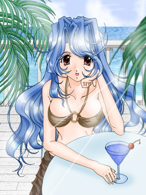 んな訳で、2000年夏の水着シリーズ(?)第3弾です。 第4弾があるかは……(しつこい(爆)) 今回は久々に背景手描きです(汗)つ、疲れた〜。