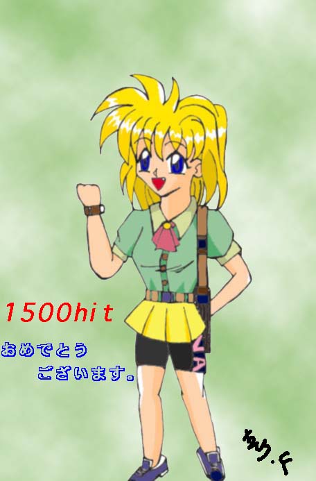 [1500アクセス突破記念CG@藤原ちひろ様] 当美術館からリンクを張って戴かせてもらってます藤原ちひろ様から戴いた 1500アクセス突破記念CGです。 幸運にも(不幸にも?)1500人目の来館者となってしまったちひろ様。