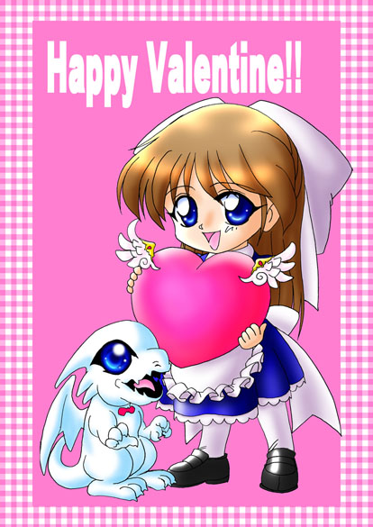 [バレンタインカード(2003年)@和泉水流様] 今年も和泉さんより可愛らしいバレンタインカードを頂きました。 ディフォルメされた女の子とドラゴンがめちゃめちゃ可愛いです。 今年は男性向けと女性向けのイラストを用意されていて 毎回いろいろと工夫されているようで感心しました。 う〜ん、私は最近こうった遊び心(?)を無くしてしまっているなあと ちょっと反省。