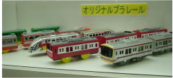 プラレール展示 プラレールの館では、車両の展示もあります。 その中のひとつの展示棚の様子。 販売数・発売場所限定の車両です。 |