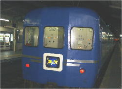 いよいよ銀河作戦決行 7月某日PM10:10頃 新快速を下りた同じホームの向かい側に 「銀河」がすべり込んできました。 牽引機は、EF65 1000番代。 急行扱いのためかHMがありません。>残念。 編成は、確か ←東京 大阪→ オハネフ+オハネ+オハネ+オハネ+オハネ+オロネ+カニ だったと記憶しています。 |