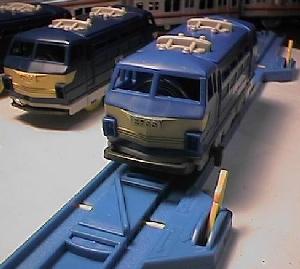 ![]() | 左側が、問題の「両側連結器付き往復EF66君」。 比較のために、右側に「片側君」を置いてみました。 ゲッチューした瞬間は、気づかなかったのですが 「両側君」は、青色なんです。 「片側君」が濃く見えるでしょ? |