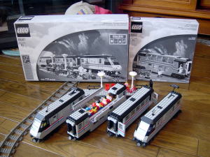 #4561 Railway Express 記念すべき入手第1号セット。 LEGO専門店での話を某氏に伝えたところ、取り扱っている店のURLを紹介して下さった。即アクセス、即申し込みをした私は間違いなくアンポタンでしょう。 私が申し込みをした3日後くらいには在庫無しとなっていました。 (恐るべし、トレインファン) このセットは、コントローラーと楕円が組めるレールも付いているので 初心者入門セットといった所でしょうか。私みたいな者には大変助かるセットです。 画像の車輌は、すでに組み立て後ですが当初はすべてバラバラの部品です。 息子とケンカしながら作りました。 |