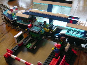 貨物車輌? このセットには、トラック1台・ジープ2台が付いてましてこれらを車輌に積む こともできます。 今プラレ―ルが展開しているプラキッズによる、車輌への乗車ごっこが すでにLEGOトレインでは確立されていたのです。 恐るべしLEGO...>かなりオーバー。(笑 |