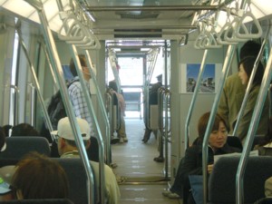 リニモ車内のようす ちょいせまいかなって感じです。 |