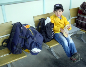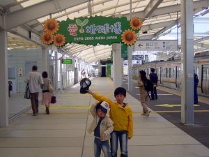 では、行きのルートを説明しよう 新幹線にて、新神戸を出発し名古屋へ。 名古屋到着後、チェックインを行い余分な荷物を置く。 名駅からは、エキスポシャトルに乗車し万博八草へ。 万博八草からは、リニモで万博会場へ。 完璧だ、完璧すぎておもしろくない。 けど家族は、旅行のトラブル/不意の出来事なんか楽しみに していないので、いきあたりばったりをやめてルートを考えて みました。 その他は、名駅からバスでダイレクト会場入り か 名駅から地下鉄東山線に乗り、藤ヶ丘でリニモに乗り会場入り などですかねぇ。 <新神戸で「のぞみ」を待つの息子の図> |