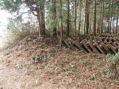土塁に囲まれた林の中では椎茸が栽培されている![]() |