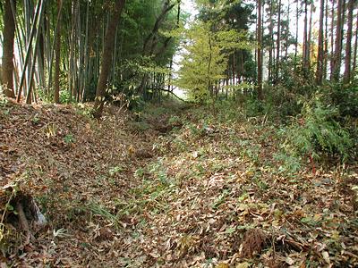 | 訪問記 | [2002/11/24]一辺約180mのほぼ正方形の濠で囲まれているために「百間濠」の別名があるのだろう。西濠(県道沿い)や東濠(赤浜神社西側)に僅かに残る土塁を見る限り、典型的な中世居館とは違い濠の外側に土塁が盛られているようだが、これは古代の環濠集落で見られる形態だと思う。しかし、このことは発掘調査現地説明会資料(昭和62年)では触れられていない。 |