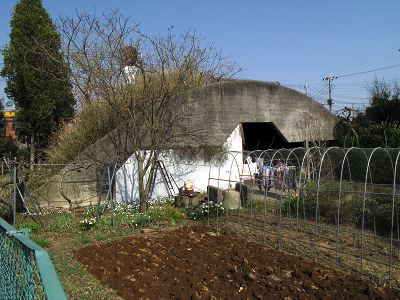 | 訪問記 | [2007/03/26]昨年は別の場所を探したため見つからずすでに壊されてしまったかと心配していたがちゃんと保存されていた。先週見に行った百里の掩体壕は土塁で囲まれた無蓋掩体壕であったが、こちらはコンクリート製の有蓋掩体壕。奥行きが思った以上に短く驚いた。掩体壕の後ろに飛び出した部分があるので尾翼はそこに収まるのかも知れない。他の掩体壕を見たことがないので比較は出来ないがコンクリート節約のためだろうか。概説の井関農機(株)にあるという中央格納庫は未確認で、実穀の台地の高射砲陣地は現在確認作業中。 |