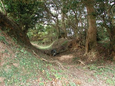 駐車場の北西側は堀・土塁が複雑な地形を造っている![]() |