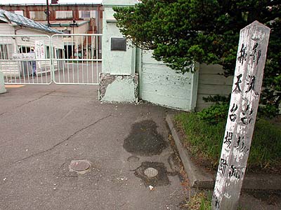 | 訪問記 | [2001/06/11]市電の終点「函館どっく前」横にある児童公園に弁天台場の説明板はあるが、ここは外枡形の西角に当たる。実際に台場があったのはその北側の道路から函館どっくよりの場所。函館どっく入口に木碑があるが、ここはおおよそ台場の中央部に当たる。 [2001/08/20]今日は函館山からの眺めを楽しんだ。 [2003/06/23]函館港改良工事紀念碑や函館漁港の舟入澗岸壁は台場の石垣が転用されているとのことだ。函館漁港は弁天台場の生まれ変わりだと思うと漁港の風景もまた格別。以前函館山頂上から撮した俯瞰写真に弁天台場の位置を輪郭線で入れてみた。右下へ飛び出しているのは虎口と外枡形部分。 [2003/08/25]弁天台場で使われていたと伝えられるトイレが上磯町追分の個人宅へ移築され現存していたが、残念ながら昨年取り壊されたそうだ。かつて見たことのある人の話によると、総桧造りで大便所の扉などは一枚板の立派なものでノブは陶器製だったそうだ。上磯町の戸切地陣屋大手門近くにあったトイレはこれのレプリカだったそうだが、そういえば数年前にこのトイレも無くなっていた。レプリカ作るくらいなら本物を保存すればよいのに。 |
