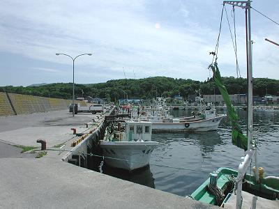 | 訪問記 | [2003/07/07]台場ノ嶺への山道入口まで行ってみた。道と思えば道だが、案内無しに入るのは無謀だろう。ヒグマがいるらしいし。どこからも台場ノ嶺は望めないらしいが、方向的には鹿部漁港の南方向になる。見出し写真正面の丘陵の奥になるはず。しかし、そんなどこからも望めないような所に台場を設置する意味があるのだろうか、疑問。 |