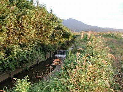 | 訪問記 | [2002/10/27]用水路東側(写真左手)が微高地になっており「要害」といわれる場所らしいが遺構などの痕跡は見当たらず。 |