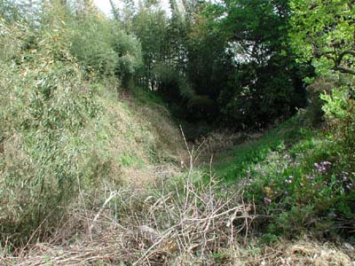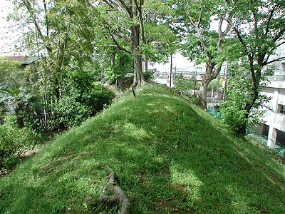 市民会館裏(石岡小学校入口)に残る土塁![]() |