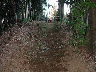 | 訪問記 | [2001/01/01]周囲は集落の家屋が建っているが稲荷社のある土塁だけがしっかりと残っている |