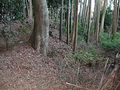 | 概説 | 乙戸川の北側台地上に位置する。その本郭跡は竹林で、古城とよばれ、三方に堀と土塁をめぐらしている。外郭は東側の高照寺や北側の小字本郷集落をも包括していた。[『阿見町史研究第6号文化財特集』より] |