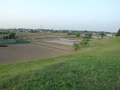 墳上より周溝跡を見る。周溝跡は畑になっている
