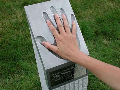 - トルシエ監督の手形(七飯町東大沼) サッカー日本代表チーム前監督フィリップ・トルシエ氏の手形が同チームがキャンプした七飯町のサッカーグランドに設置された。夕べのニュース(2002/7/14)で知ったので早速行ってみた。大きな手でした。