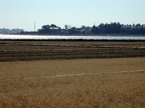 牛久沼をはさんで北側の庄兵衛新田からの遠望