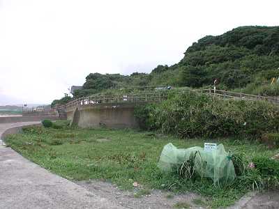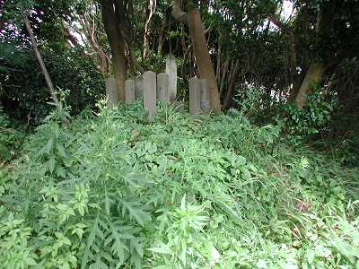 | 訪問記 | [2004/09/07]駐車場になっている新城館の堀跡から土塁を越えて郭内へ入ると、北西南に土塁がある。海へ向く東側には大きな土塁はないようだ。そこから郭の海際に沿って歩いてみた。確証は無いが台場の隔墻(かくしょう)と思われる土塁残欠らしきものがあった。同行いただいたとらさんの『常陸古文化探求室』の初崎台場のページでは日立製作所健康保険組合初崎保健センターの場所を台場跡に比定している。これは『村絵図に見る日立』に掲載されている会瀬村絵図の読み取り方の違いで、私のものは日立市の説に準じている。(-->新城館参照) |