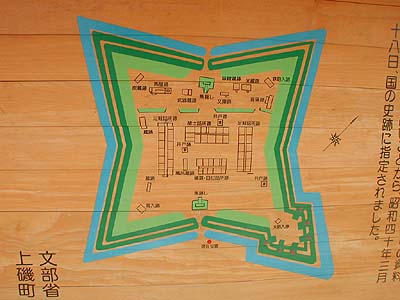 | 概説 | この陣屋は、安政2(1855)年幕府に命じられ松前藩が築いた。構造は、四稜郭で亀が首を出した形をしており6つの砲座がある(写真1.)。郭内には17棟の建物があり、約120人で守備してしたが、完成から13年後の明治元(1868)年箱館戦争の時、相手方に陣屋が使われないよう建物に火をつけ焼き払った。[正面説明板より抜粋] 清川陣屋、濁川陣屋、穴平陣屋とも。 |