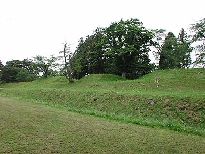 | 訪問記 | [2001/06/11]最近草刈りが行われたようで、土塁も堀も見やすかった。 [2001/07/02]前回見なかった火薬庫跡を見てきた。[註]後日、上磯町のOさんから、「現地解説板その他で「入口」とされている2ヶ所の土塁の切れ目は後で開けられたものだと思う。こんな所に切れ目があって外と行け行けになっていたら火薬庫を土塁で囲む意味がないでしょう。」とのご教示をいただいた。確かに現地を見たときに同じような感想を持ったように記憶している。 [2002/08/19]ハリストス聖教会墓地のある場所も陣屋関連の施設ではないだろうかということで周辺の土塁を見に行った。 [2003/08/25]今日は訪問記ではないのだが、旧弁天台場のトイレにまつわるこんな話を聞いた。函館の弁天台場で使われていたと伝えられるトイレが上磯町追分の個人宅へ移築されつい最近まで現存していたのだが、残念ながら2002年に取り壊されたそうだ。かつて見たことのある人に聞いたのだが、総桧造りで大便所の扉などは一枚板の立派なものでノブは西洋の陶器製だったそうだ。以前、戸切地陣屋大手門近くにこれのレプリカのトイレが置かれていたとのこと。そういえば1998年頃に行ったときトイレがきれいになっていたという記憶がある。あれがレプリカのトイレだったらしい。その数年後、駐車場の入口近くに大きなトイレが設置され、レプリカのトイレは無くなってしまった。レプリカ作るくらいなら本物を保存すればよかったのに。 [2005/08/29]大正13年発行『北海道史蹟名勝天然紀念物調査報告書』の松前陣屋址図(戸切地陣屋)によると陣屋の南東方向へ延びる直線道路(桜並木)両脇には土塁に囲まれた屋敷跡があり、またその両脇に拡がる空間(現在は畑地)を取り囲む土塁が描かれている。現況はどうなっているのかを見に行った。現地を歩いてみると、現在の直線道路両脇にこんもりと土塁が残っているのが屋敷周辺を取り囲む土塁の残存かも知れないと想像。それとは別に、畑地を取り囲む土塁は北側に一部残存(おおよその位置を上記の「残存土塁位置図」に赤で示した)。小さなトレンチを入れてみれば結構しっかりした土塁が姿を現すのかも知れない。この土塁について紹介しているページは今のところ他には無いのではないだろうか。 |