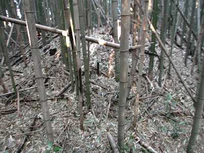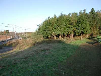 | 訪問記 | [2003/12/02]阿見町の大竹先生情報で行ってみた。筑波南奥原工業団地へのアクセス道路建設によって壊されてしまったかもしれないとのことだったが、竹藪の中に土塁が馬蹄形(差し渡し15m程の郭を構成)に残っていた。西側は壊されたのかもしれない。地形的に東側は台地続きでさほど要害とも思えず、馬蹄形の土塁から想像するに、狼火台のような施設だったのかもしれない。 |