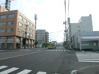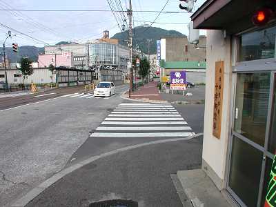 末広町。十字街電停の東側、十字街交番南西角の歩道あたりに異国橋はあった。[map-B]