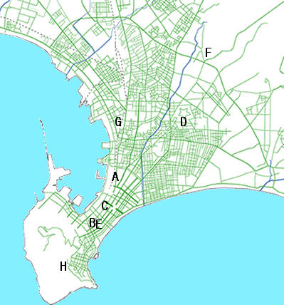 鶴岡町は現大手町の電車通り沿いにあった。一本木と異国橋のほぼ中間。[map-C]