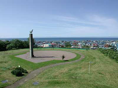 | 訪問記 | [2001/7/9]国道278号線沿いのハマナス台場公園内の海難慰霊碑(写真左の塔)の付近に砲台があったそうだ。 [2002/8/26]今年最初で最後の晴天の休日、対岸の室蘭白鳥大橋も眺められた。 |