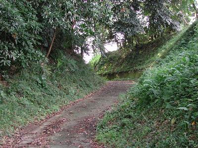 現在の農村公園の地は元田伏小学校跡地。門柱両脇には土塁が残るが小学校のために造ったものか館の遺構を利用したものかちょっと分かりかねる。館跡の遺構は見当たらないが南西側の台地との間を通る道は堀切を利用したものと思える。