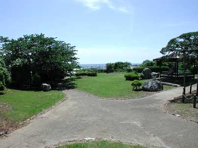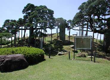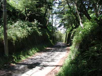 | 訪問記 | [2004/06/14]寅賓閣の主要建物は那珂湊勤労青少年ホームの南側一帯に建っていたようで、現在、寅賓閣碑の建つ小山は茶屋跡だったようだ。紛らわしい。茶屋跡の東側、台地東端に海防見張番所が置かれていた。光圀の別荘とは言っても城郭としての体裁を意識していると思えるのは、西側の文武館との境にある堀切状の切り通し道。 |