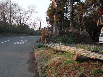 | 概説 | 飯倉は二重の構造で、明神脇から峯下へ向かう堀が東坪を守り、大木戸にある二重の堀が東・西両坪を守る。これらの堀は集落を島のようにし、稲敷台地の尾根道から遮断する。伝承によれば、東坪は小田氏に仕えたことのある人々のグループ、西坪は土岐氏の時代になってから来住した人々のグループと考えられ、そこに集落内での小領主権の交代が考えられそうである。[『阿見町史』より] 現在では分かりにくくなっているが、堀が土塁の内側に掘られていたらしい。このような配置は東北北部から北海道道南にかけて分布している高地性集落あるいは防御性集落で見られることを聞いたことがある。 なお、「城砦集落」についてはこちらにまとめてあります。 |