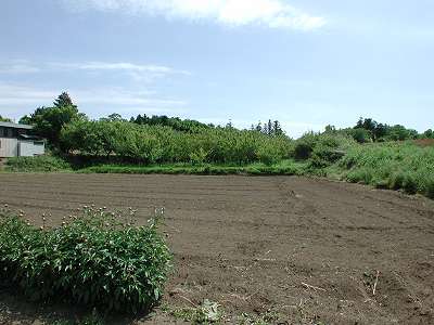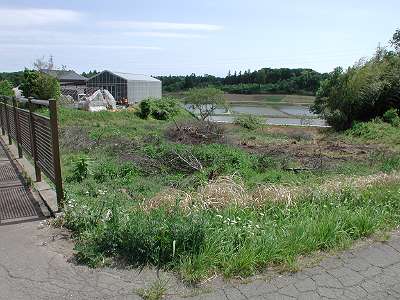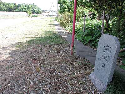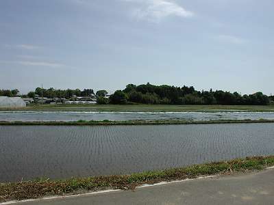 | 訪問記 | [2002/5/6]今泉は新治村・八郷町の山並みも近く、土浦市内とは思えないような田園地帯。今泉集落の周囲にはかつては谷津だったと思われる水田が巡り、要害であったことを想像させる。『土浦市史』の縄張図を見ると本丸と二の丸の間の堀には相横矢の仕掛けが描かれている。現在、堀は畑にするためにかなり拡げられまた形状も変えられているが、横矢の南側の部分はそれなりに分かる。 |