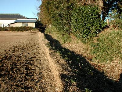 鹿島神社境内の西辺に沿って低い土塁がある。その西側は2mほど低くなって住宅あるいは芝畑になっている。そのあたりが堀の跡になるのかもしれない。