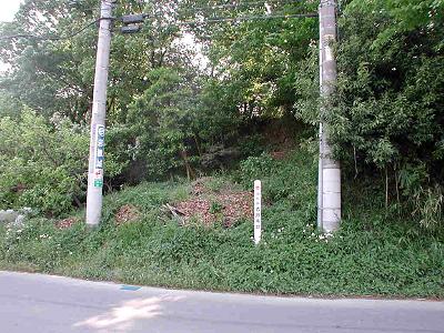| 訪問記 | [2003/05/05]岩瀬高校の西側の標柱から上を見上げるともう一本「岩瀬城跡」の標柱が見えたので、なんだすぐそこが城址なんだと思い、目の前の数メートルの土手を這い上がってみた。と、そこは土塁の上で確かに城内ではあるのだがあまりに民家の中、犬に吠えられすぐさま退散。南側の道路沿い西へ入って行くと、さきほどの郭には「せいかん荘クリニック 」という医院があるようだ。その西側に現在は道路として使われている堀切があり完全に台地を分断している。堀切から西側の郭へ登ると辺縁には土塁が廻らされている。南側の縁沿いに西へ向かうが所々大きな崩落部分がある。この郭の南側縁は60mほどだっただろうか。その西側にはまた堀切があり、堀切の西側は土塁と土塁から土橋で繋がる郭(現在は墓地)になっている。岩瀬高校側に郭があった可能性もあるが現在残っているのは三連の連郭式城郭である。 |