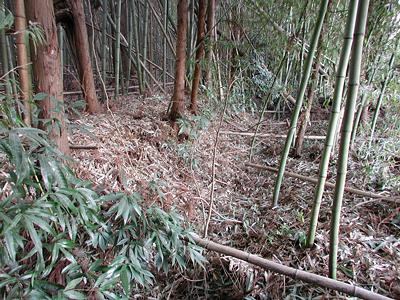 土塁・堀の残る林(右手背後に上条城がある)![]() |