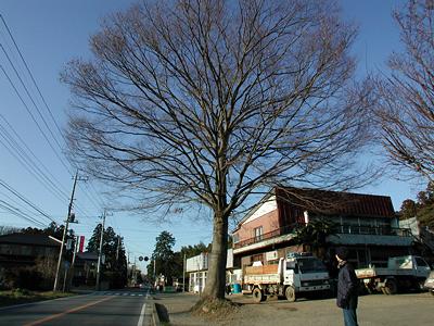 毎日下を通りながら、よい木だと思っている。2003年元旦、一宮楯縫神社へ初詣した帰り道、欅の下を通りかかるとコツコツコツコツという音がする。見上げると小さなキツツキが幹をつついていた。[2003/01/01]