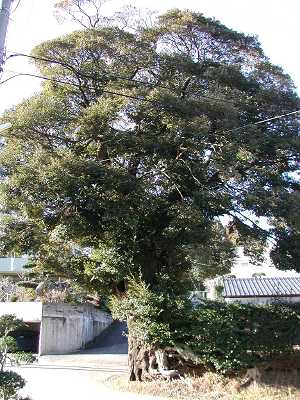おそらく楠だと思う。幹が民家の生け垣の角の形になってしまっている。[2005/01/01]