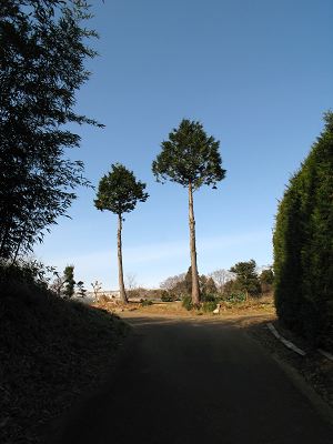 葡萄畑の脇の坂道を登り切ると二本の杉がヒョロッと立っていた。[2006/12/31]