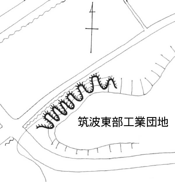 桜川村大字甘田。筑波東部工業団地の台地の西先端部((株)レイケム敷地)の北側斜面。