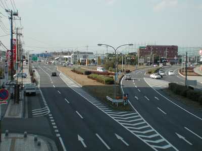平泉交差点歩道橋から平泉西交差点(右手)、筒井東交差点(左手)を臨む