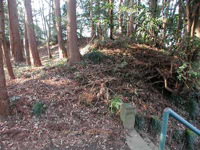 | 訪問記 | [2005/01/30]熊野神社がある2郭は台地基部との間の堀切に面した北西側に土塁がある。それに対し1郭との間の堀切に面した辺縁には土塁を持たない。しかしこの堀切は1郭側へ突き出したくの字のカーブを持っており、余湖さんも指摘するように、ここに木橋が架かっているとすれば1郭側から横矢を掛けることを狙っていると思われる。 |