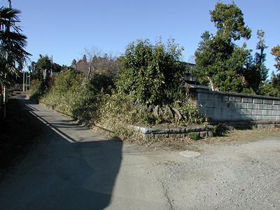 道路を挟んで館の東側一帯は夏場なら湿地になるかと思われるような場所だが、そこにも新しい宅地が増えつつある。竹林の道路に面した場所には土塁と古墳を利用したのかとも思える櫓台がある(頂上に祠が置かれている)。道路と土塁の間を水路が流れている部分もあり、堀の名残とも思える。奥の屋敷の周囲も土塁に囲まれているように見える。